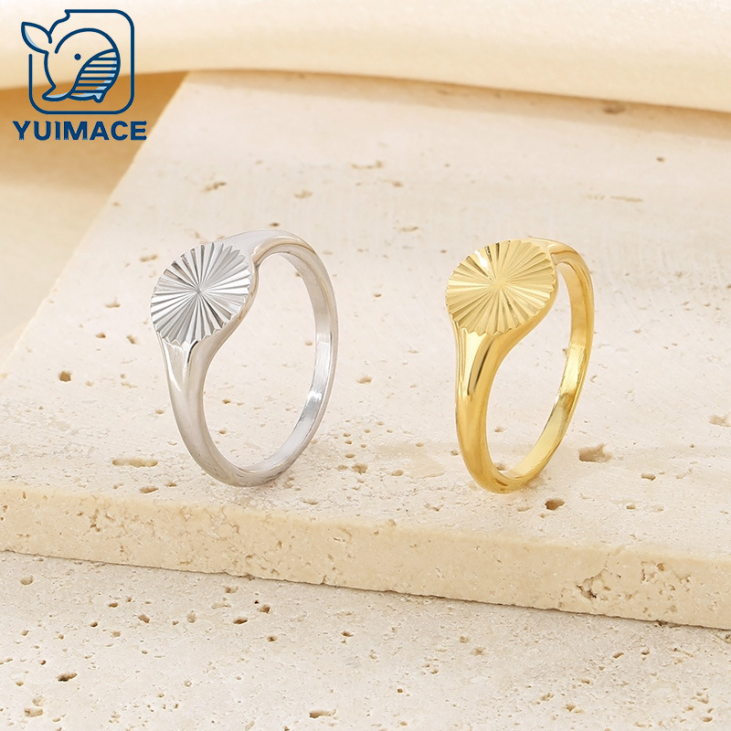 Ins rubbings striped sunflower stainless steel ring Joker fashion titanium steel 18K gold ring ring jewelry wholesale