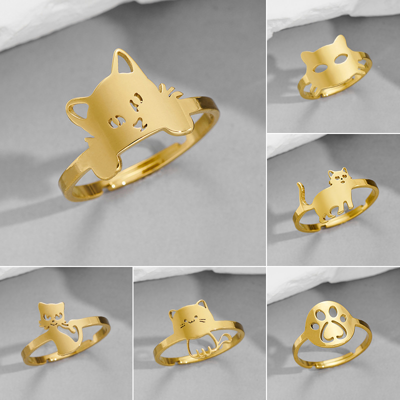 Japanese and Korean New Style Simple Cute Kitten Ring Women's Open Cat Paw Animal Ring Women's Jewelry Yiwu Accessories
