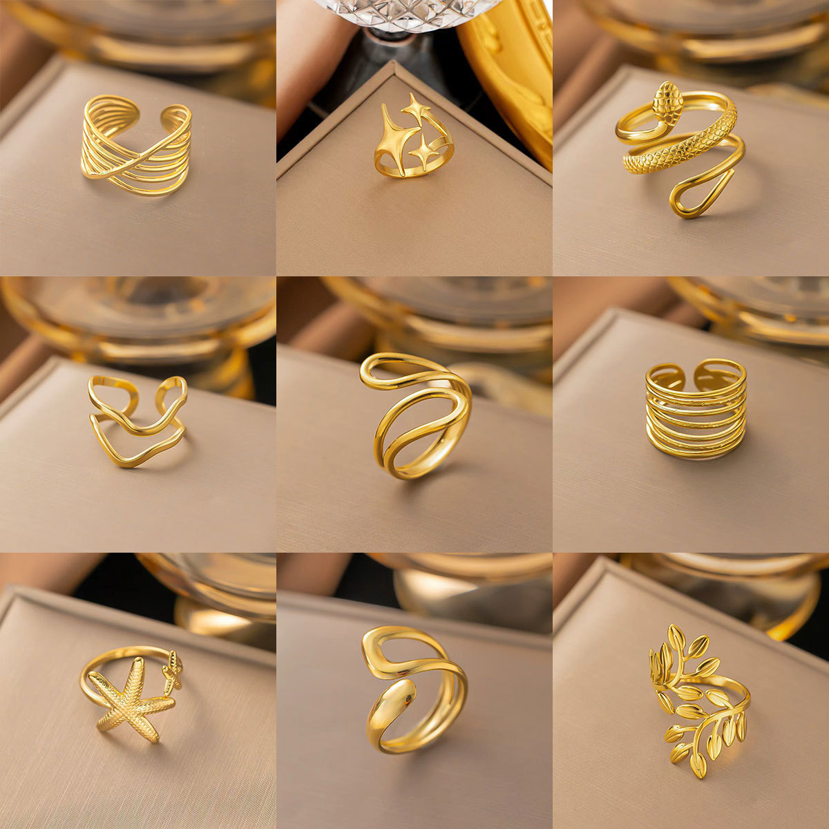 Li quan geometric irregular opening stainless steel ring personality niche line winding 18k gold non-fading jewelry