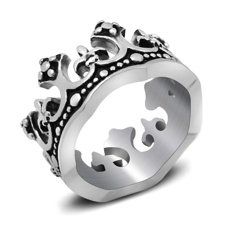 European and American Amazon jewelry crown pattern steel retro boiled black men's stainless steel titanium steel crown ring