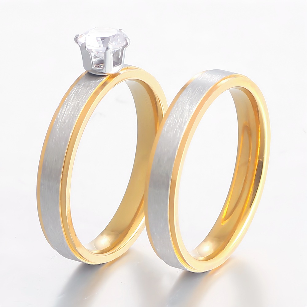 Cross-Border Popular Accessories Stainless Steel Diamond-Encrusted Rings Fashionable Simple Couple Rings European and American Amazon Jewelry Wholesale