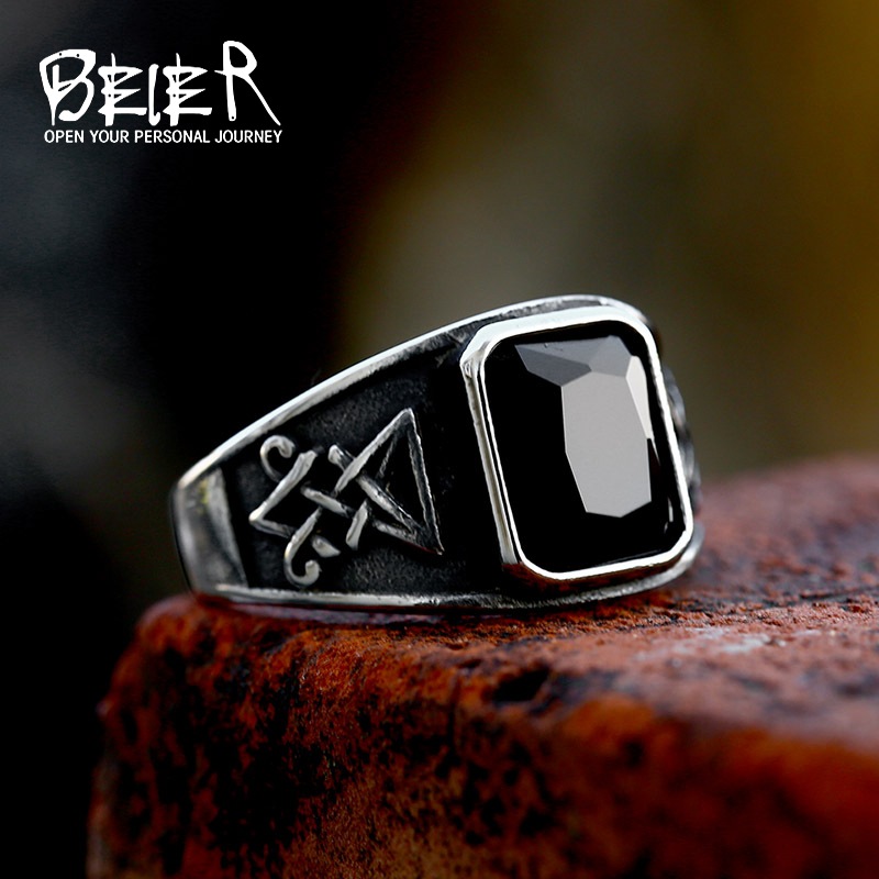 beier cross-border new Lucifer Satan stainless steel ring wholesale European and American retro titanium steel inlaid gem ring