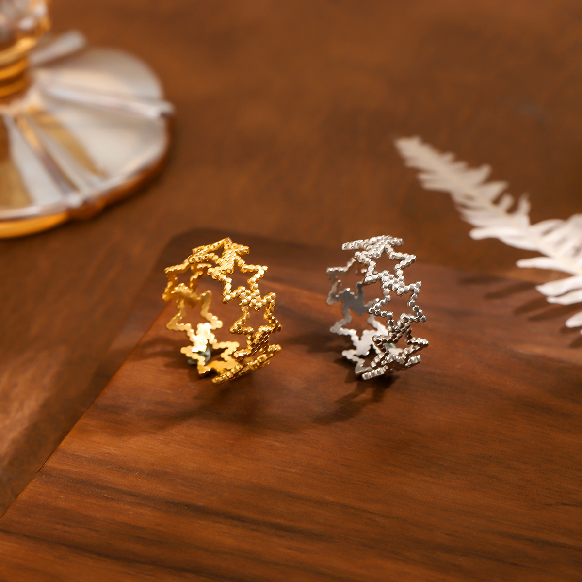 European and American fashion geometric stainless steel hollow five-pointed star ring ins style niche design sense open star ring