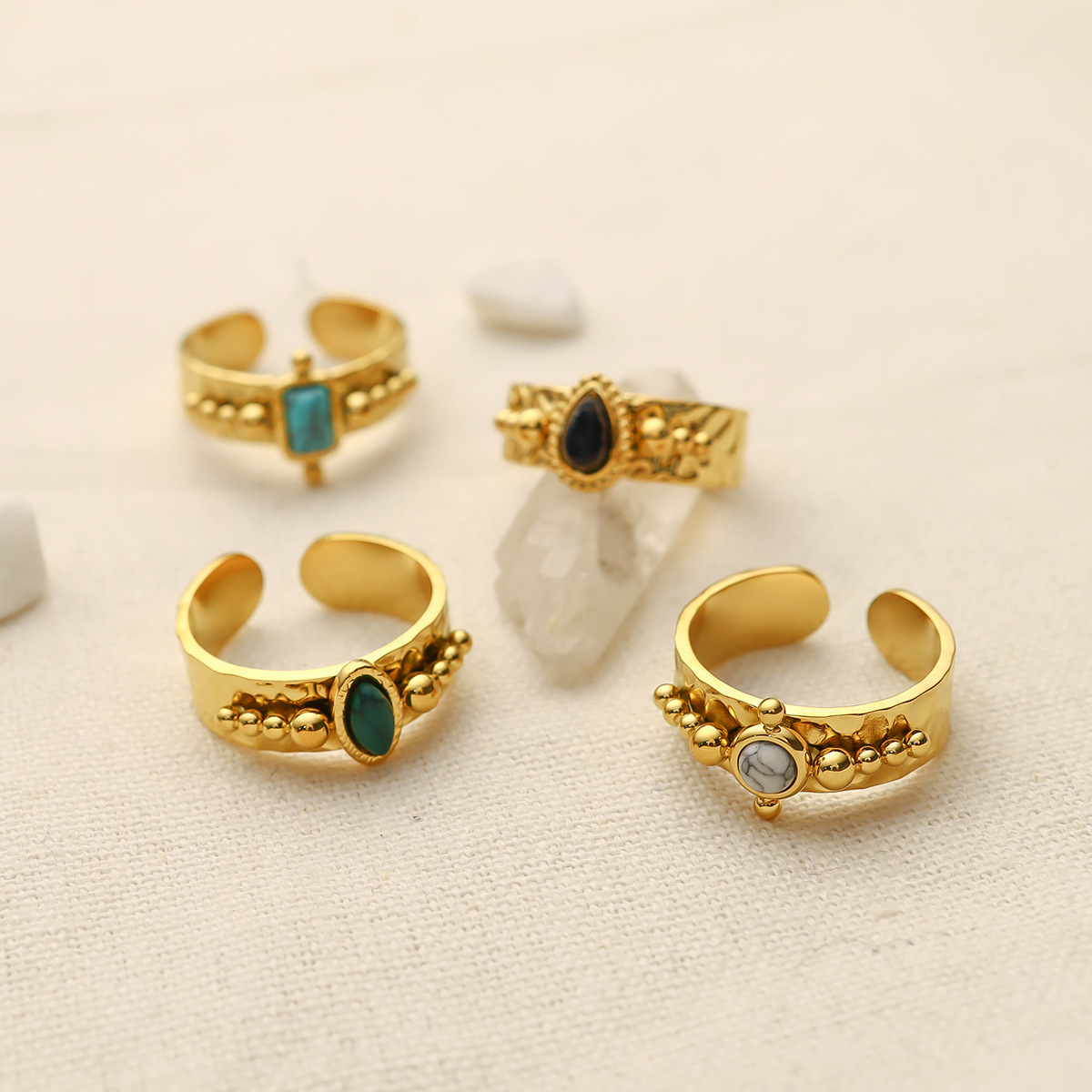 French Retro Personality Explosions Bracelet Stainless Steel Plated 18K Gold Natural Stone Flower Turquoise Geometric Opening Ring