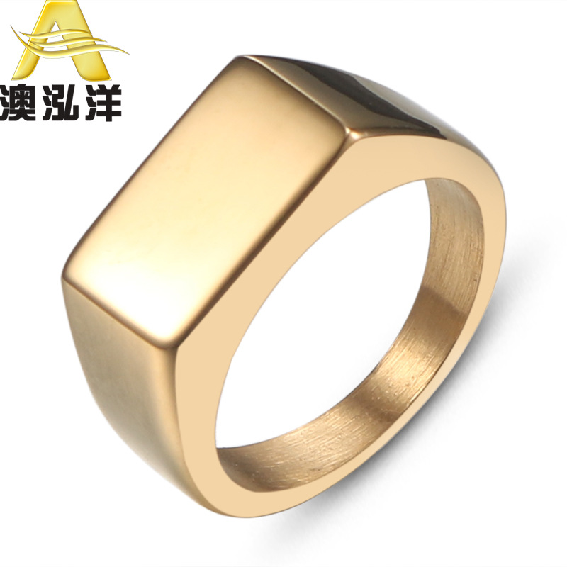 European and American Fashionable Rectangular Glossy Ring, Personalized Simple Men's Stainless Steel Ring Jewelry Wholesale Hz206