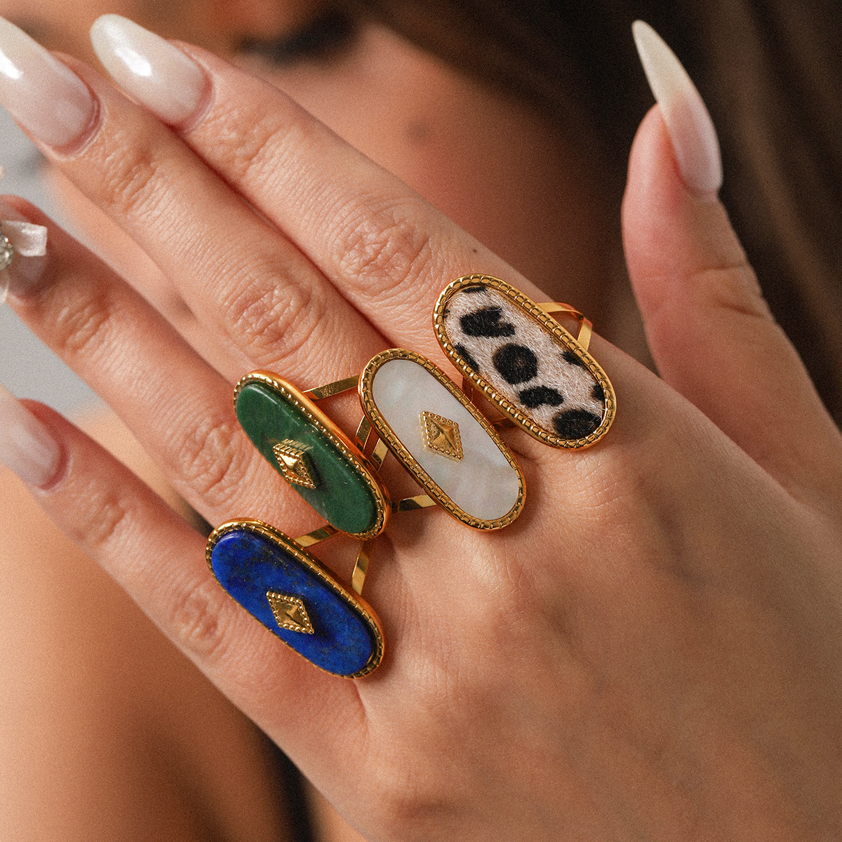 The World's Best-Selling Stainless Steel Natural Stone Ring, Light Luxury and High-End, Cross-Border Exclusive Lapis Lazuli Turquoise Ring Bracelet