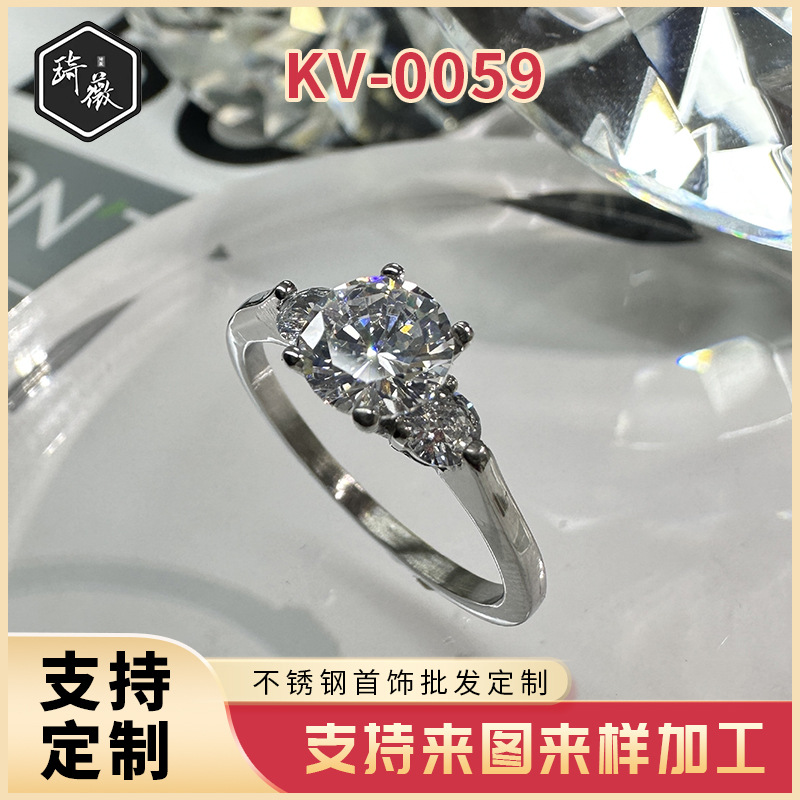 Cross-border new European and American fashion flash diamond round zircon ring foreign trade stainless steel female ring jewelry manufacturers wholesale