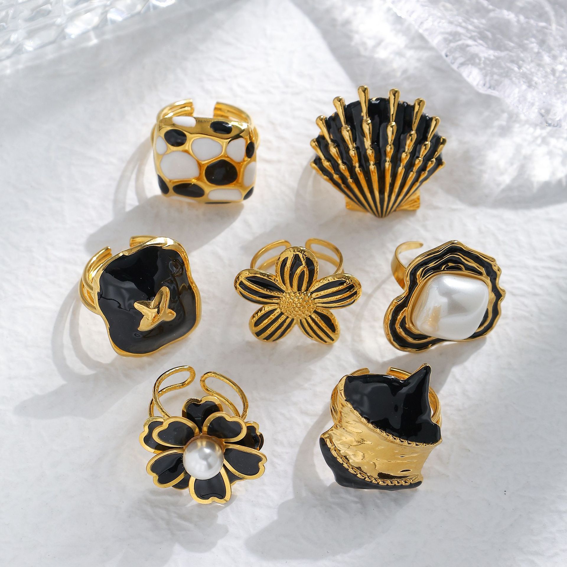European and American New Stainless Steel Oil Dropping Ring All-match Personalized Geometric Flower Football Shell Multi-style Black Ring