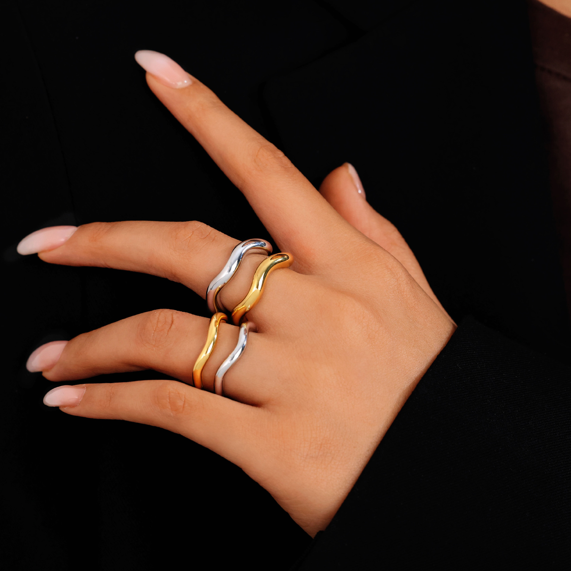 Direct Sales from the Source Factory, Stainless Steel Rings, Plain Rings, Wave Design, Minimalist Niche Design, Hand Jewelry, Rings, Cross-Border Wholesale