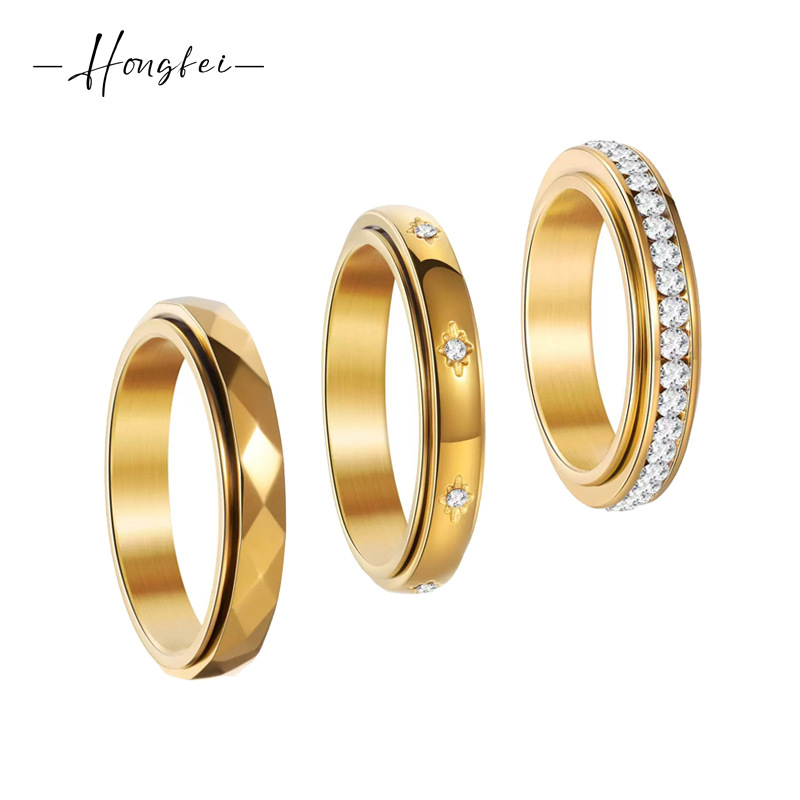 Cross-border creative men's and women's stainless steel gear ring full sand steel color rotating ring transfer smooth belt functional bracelet