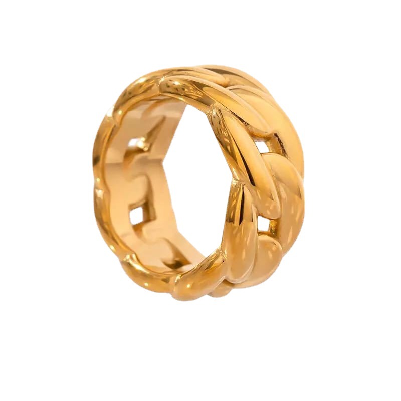 European and American ins style jewelry fashion simple chain stainless steel ring plating 18K gold titanium steel ring