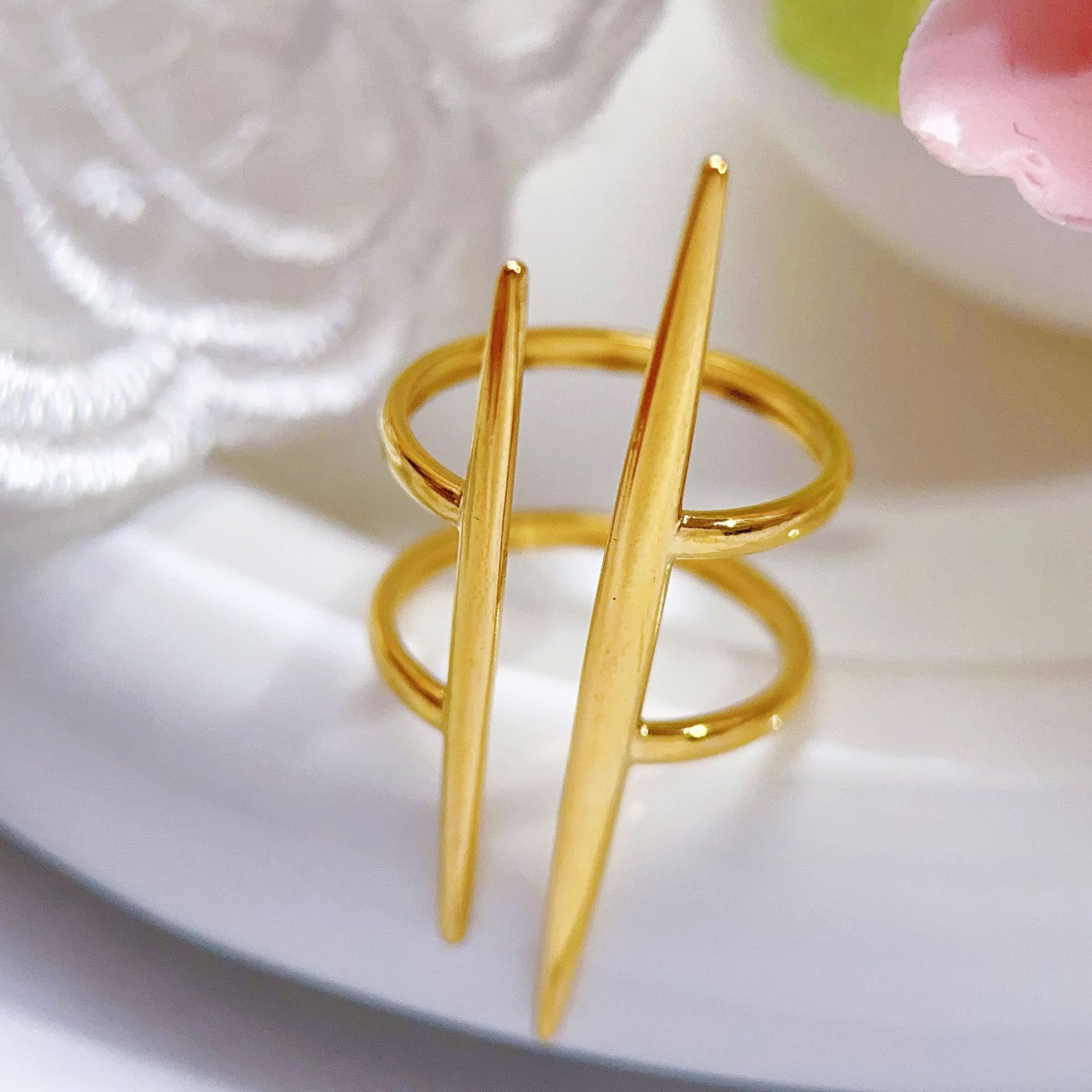 New Simple Six-Claw Ring Design Stainless Steel Ring 18K Gold Tail Ring Korean Style Trendyy Ultra-Fine Diamond Jewelry