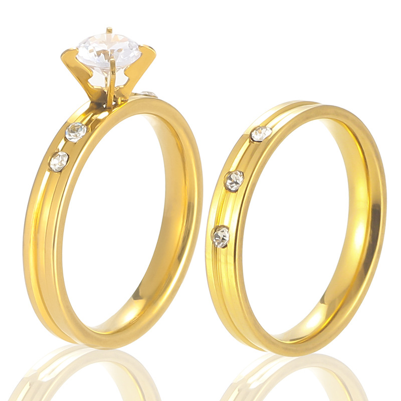 European and American cross-border titanium steel zircon ring diamond couple ring four-claw diamond ring pair ring stainless steel jewelry