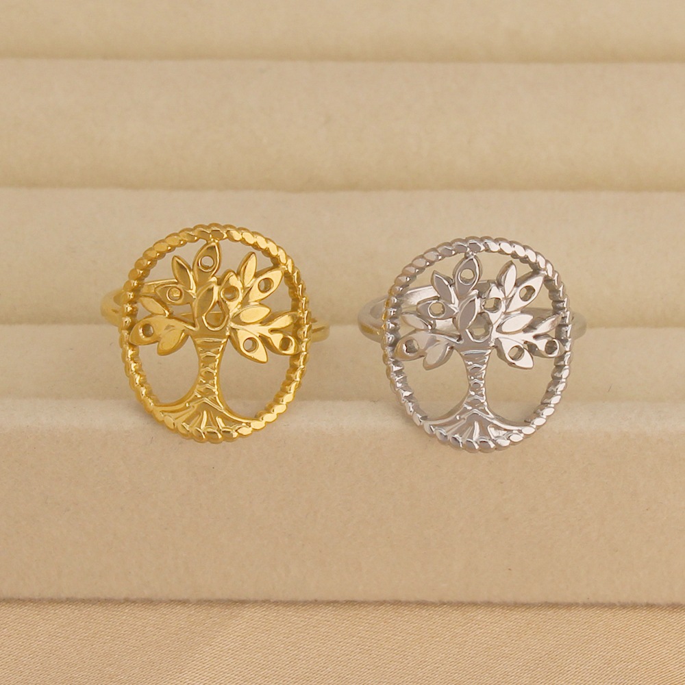 European and American New Style Stainless Steel Oil Pressure Opening Adjustable Women's Ring Simple Cut Out Life Tree Ring Tail Ring