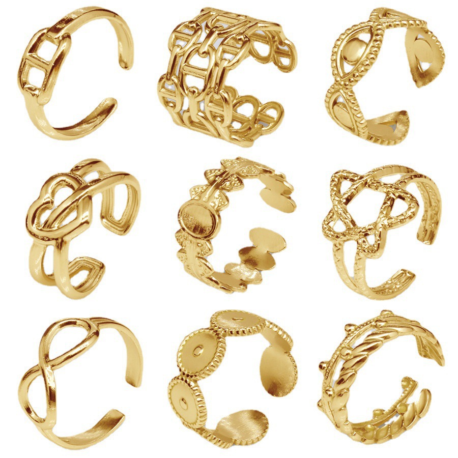 Cross-Border Stainless Steel Ring Exaggerated Fashion Geometric Open Oil Drop 18K Gold Index Finger Ring Light Luxury High-End Jewelry