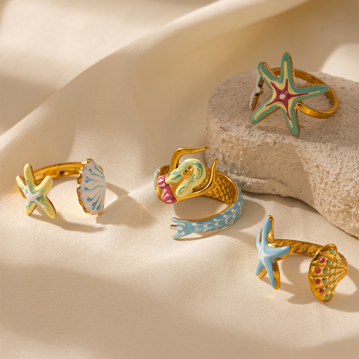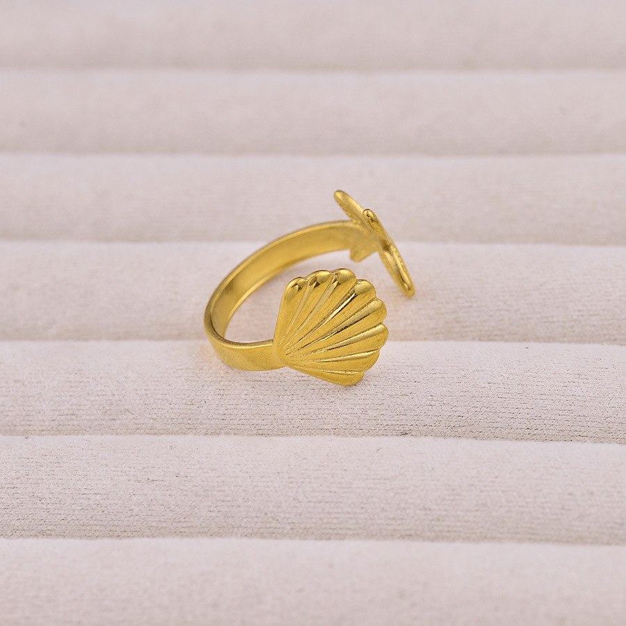 Cross-Border European and American Shell Ocean-Themed Stainless Steel Ring Beach Vacation Style Starfish Niche Personality Open Ring