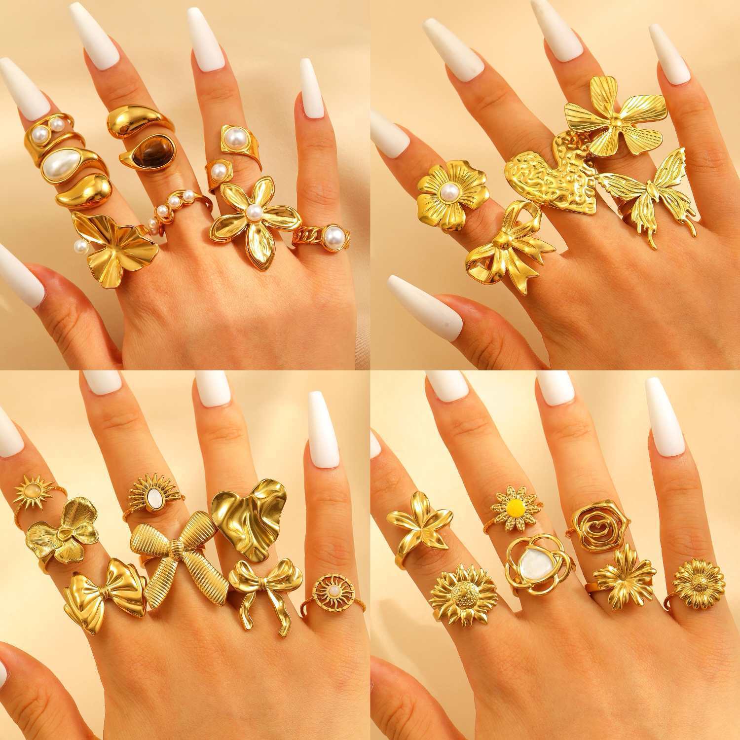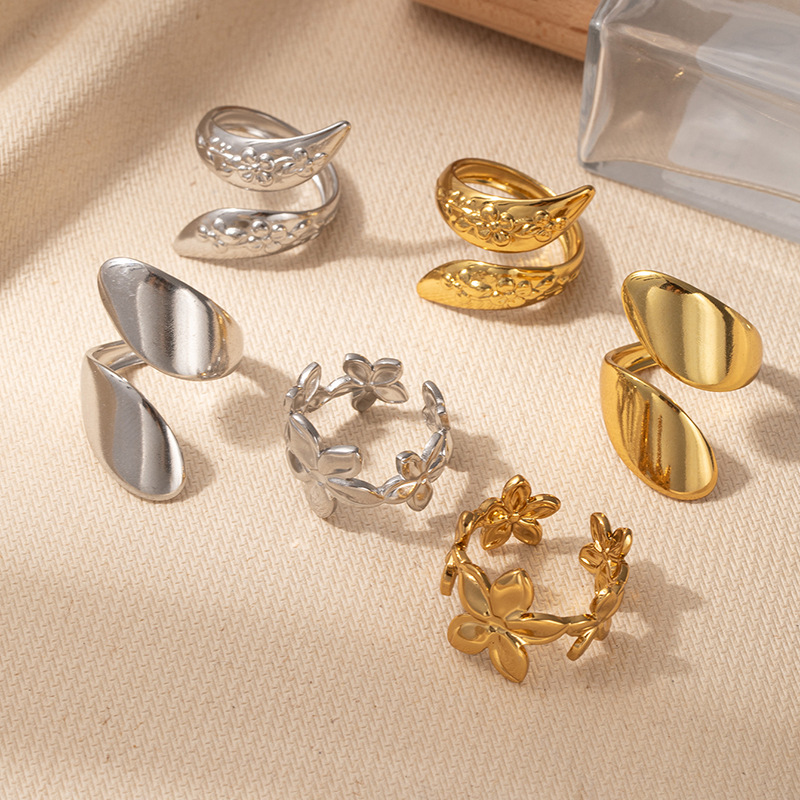 European and American Stainless Steel Water Drop Flower Ring Women's Fashion High-End Niche Personalized Ring Titanium Steel Hand Jewelry Cross-Border