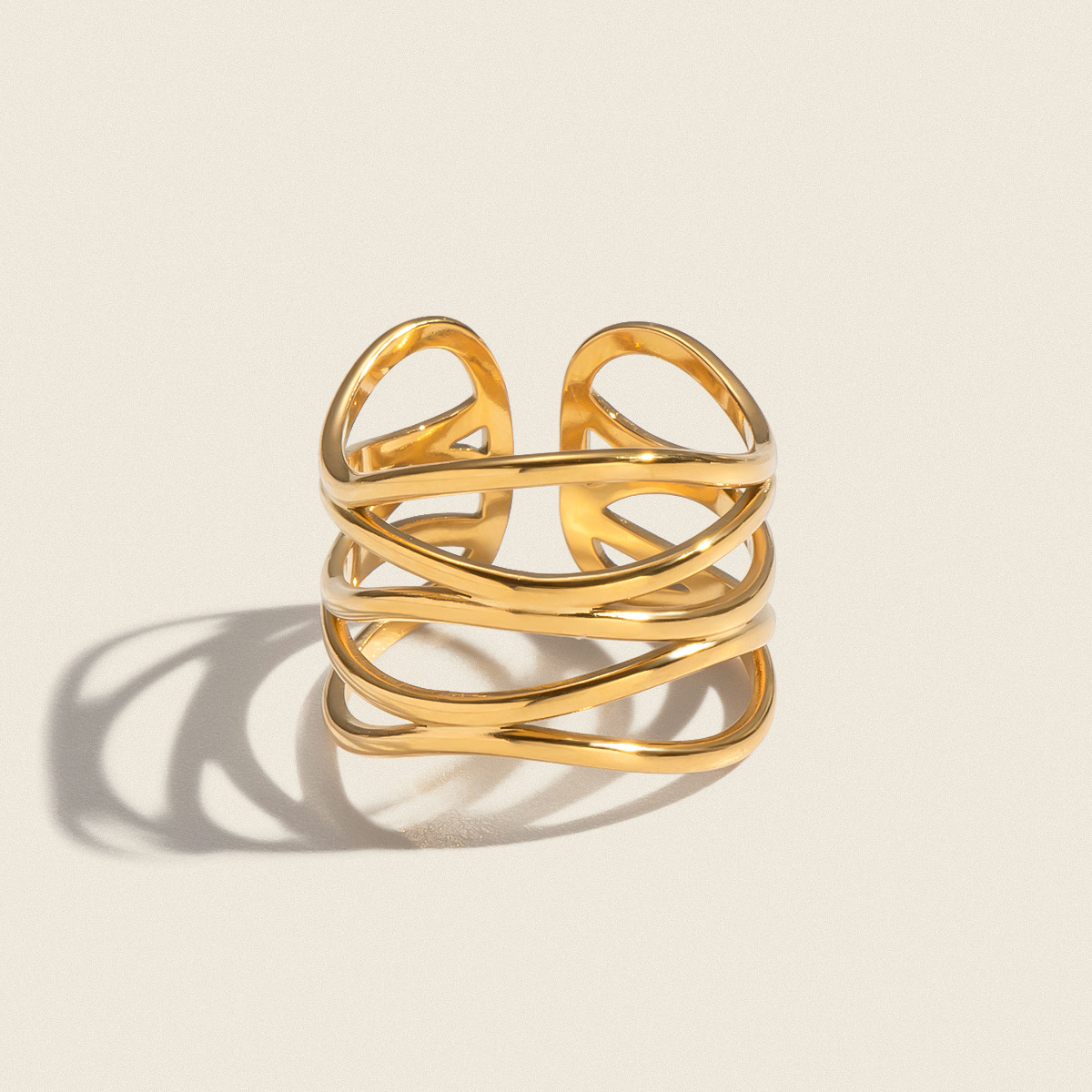 European and American Ins Style Exaggerated Stainless Steel 18K Gold-Plated Ring Women's Titanium Steel Non-Fading Ring High-End Jewelry