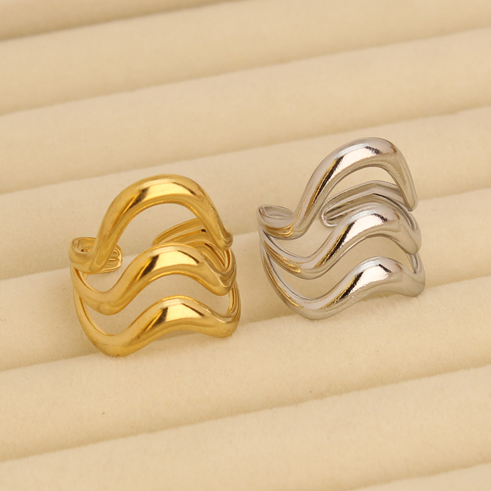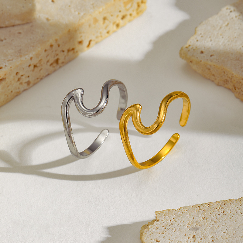 Adjustable Open Wave Titanium Steel Ring for Women, Niche High-End Light Luxury Style, Personalized Stainless Steel Versatile Ring