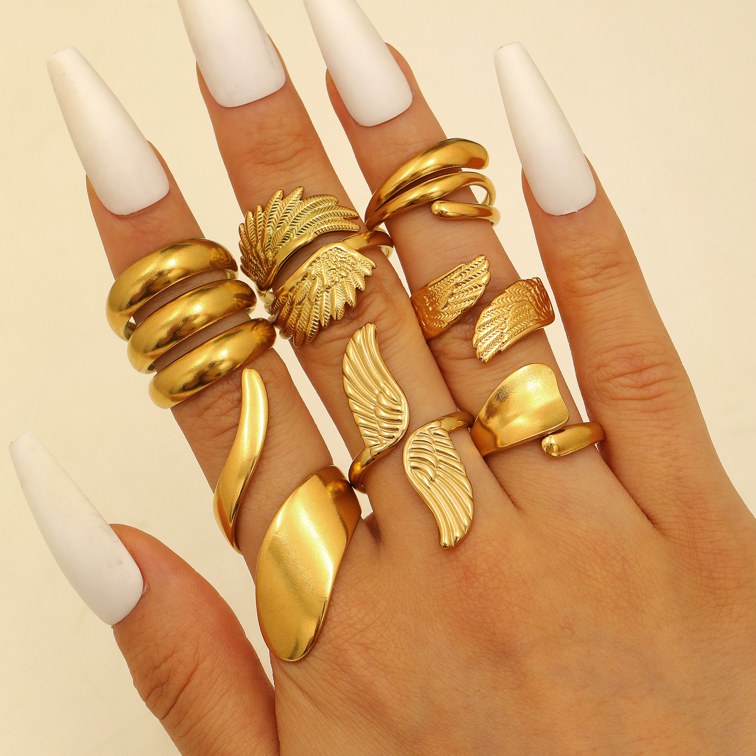 European and American Style 18 Real Gold Stainless Steel Ring Wings Peace Dove Water Drop Open Ring Personalized Ring Retro Cross-Border