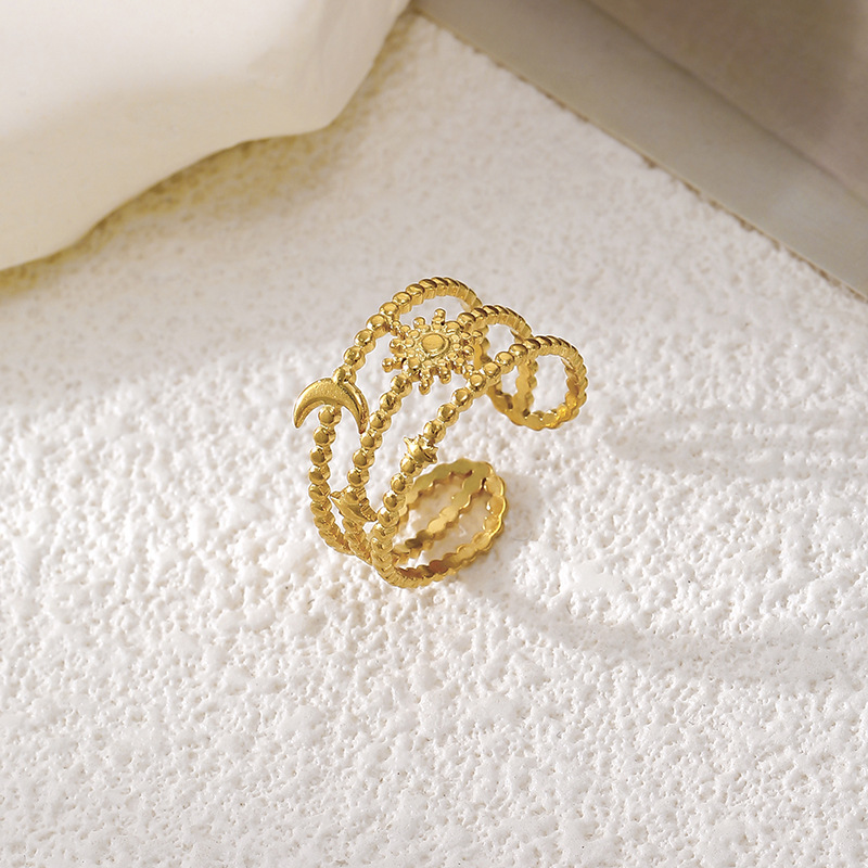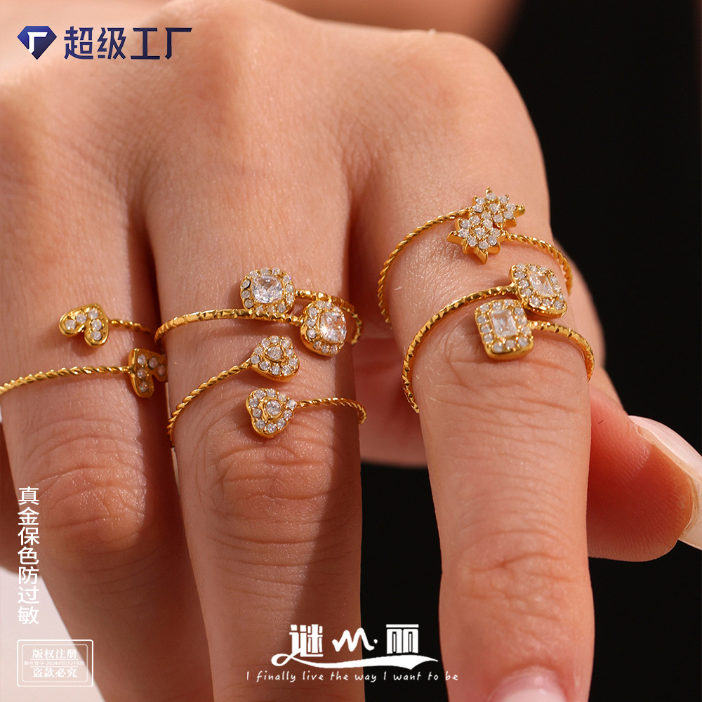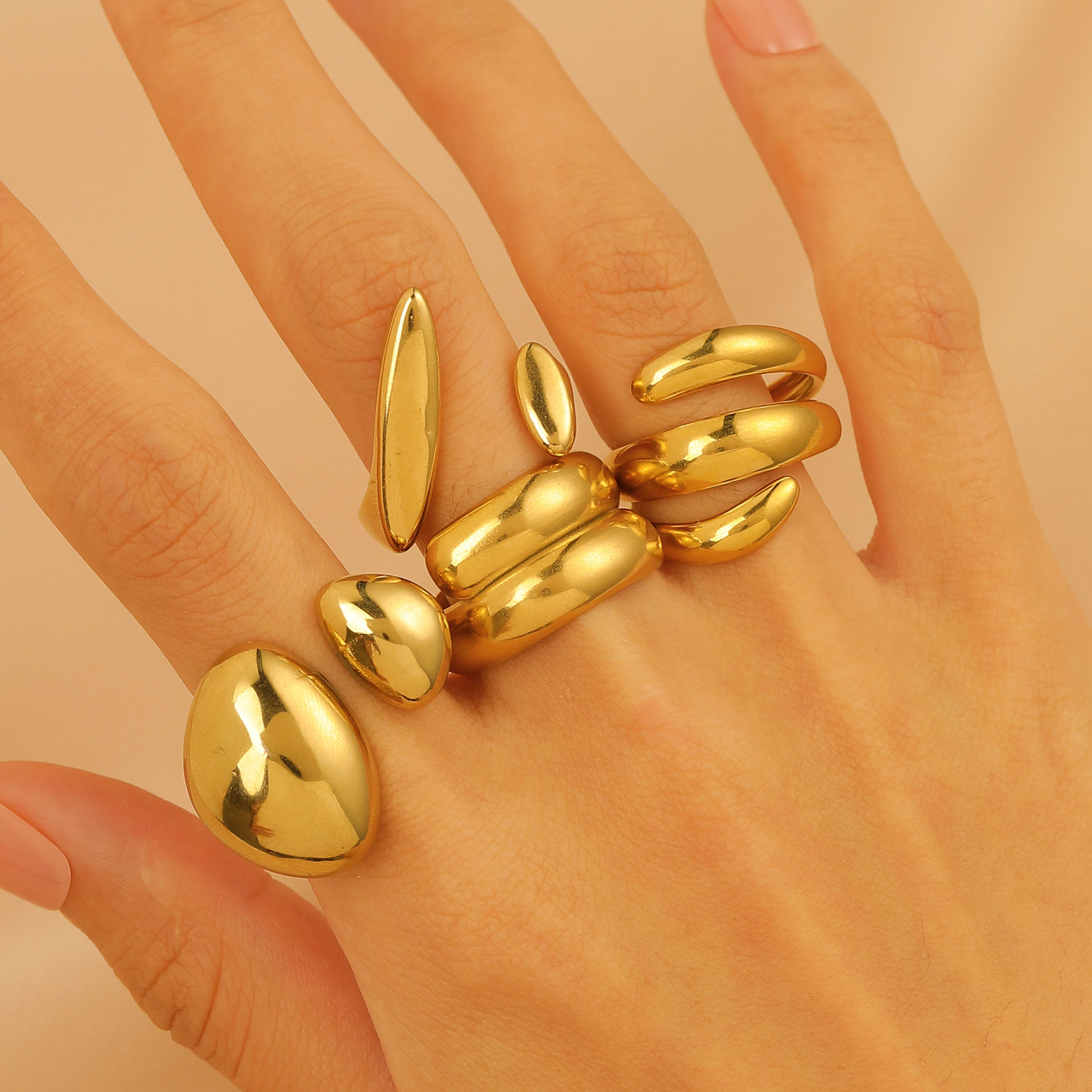 European and American Style 18K Real Gold Stainless Steel Ring French Style Light Luxury Style Water Drop Glow Gold Open Ring Jewelry for Women