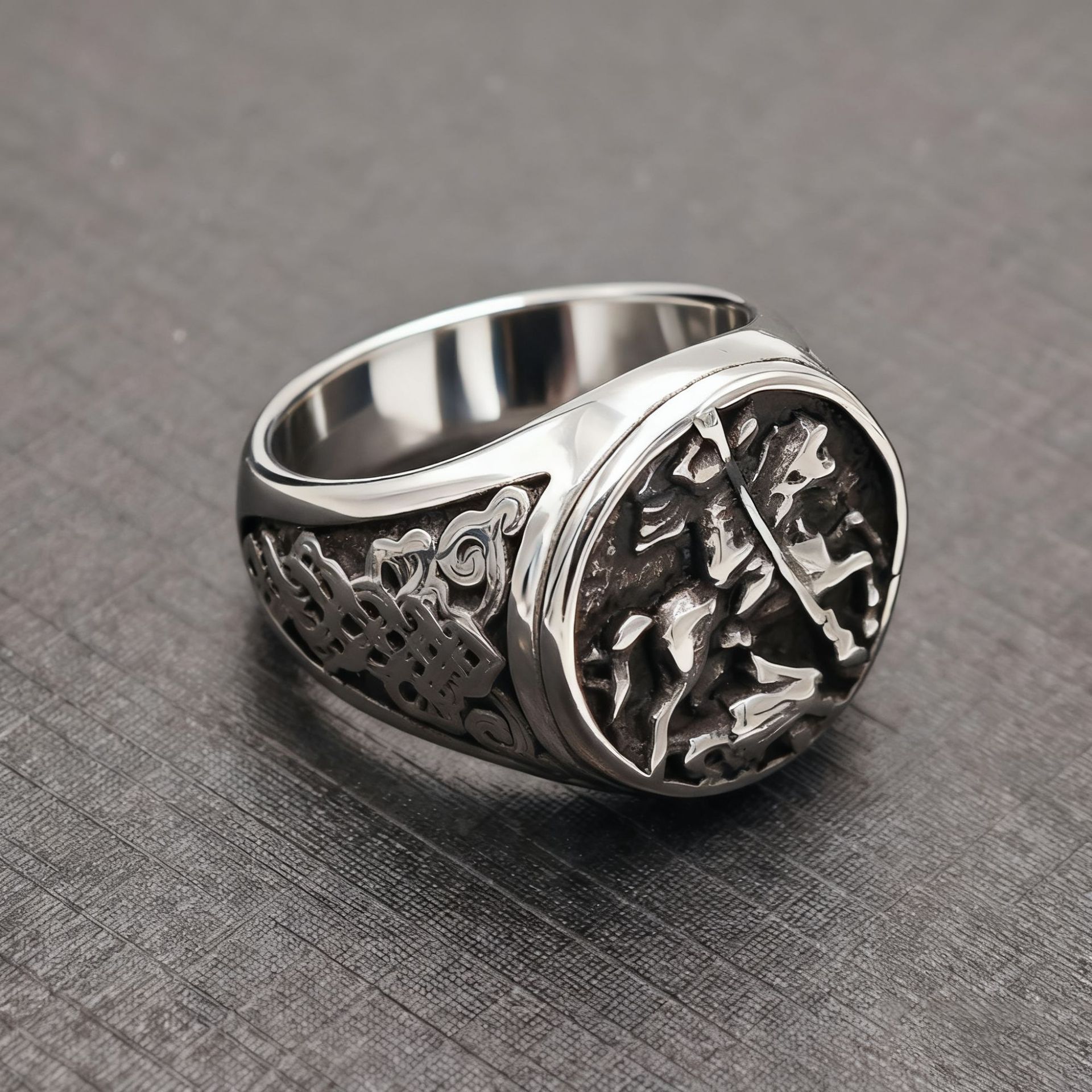 European and American Cross-Border Stainless Steel Personalized Horse Riding Ring Hand Jewelry Scandinavian Viking Celtic Knot Titanium Steel Ring