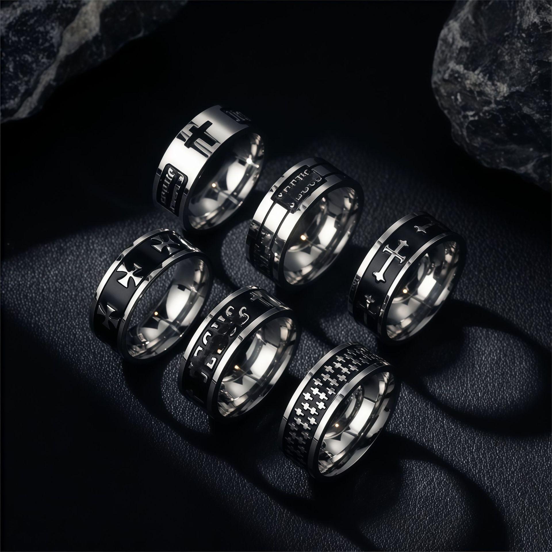 Huayue Amazon Antique Stainless Steel Cross Corrosion Blackened Ring Men's Simple and Fashionable Retro Ring
