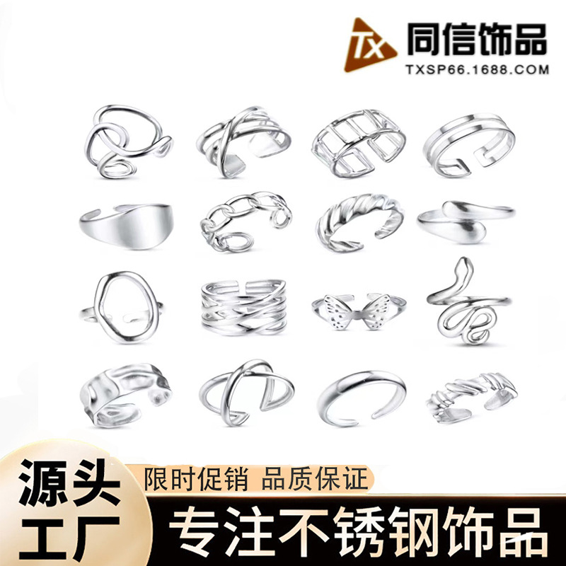 European and American Stainless Steel Ring High Color Value Tail Ring Jewelry Fashion Design Hollow Ring Niche All-match Live Ring