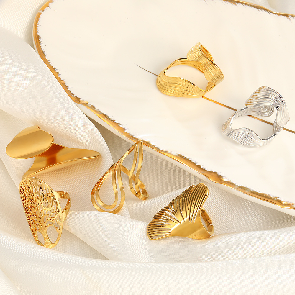 Cross-Border Stainless Steel Ring, Personalized Asymmetrical Jewelry, Electroplated 18K Gold Titanium Steel Ring, Non-Fading Open Hand Jewelry