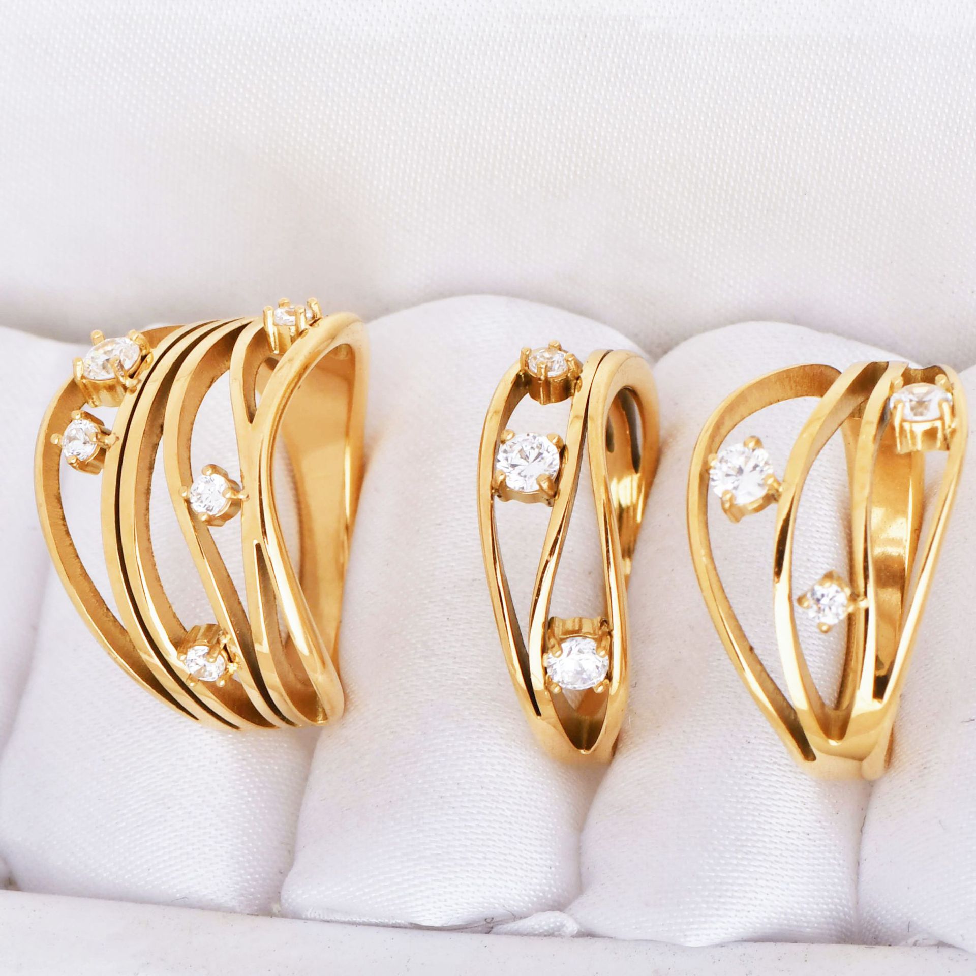 French Retro Cut Out Titanium Steel Ring for Women Accessible Luxury Diamond Design Stainless Steel 18K Gold Ring High-End