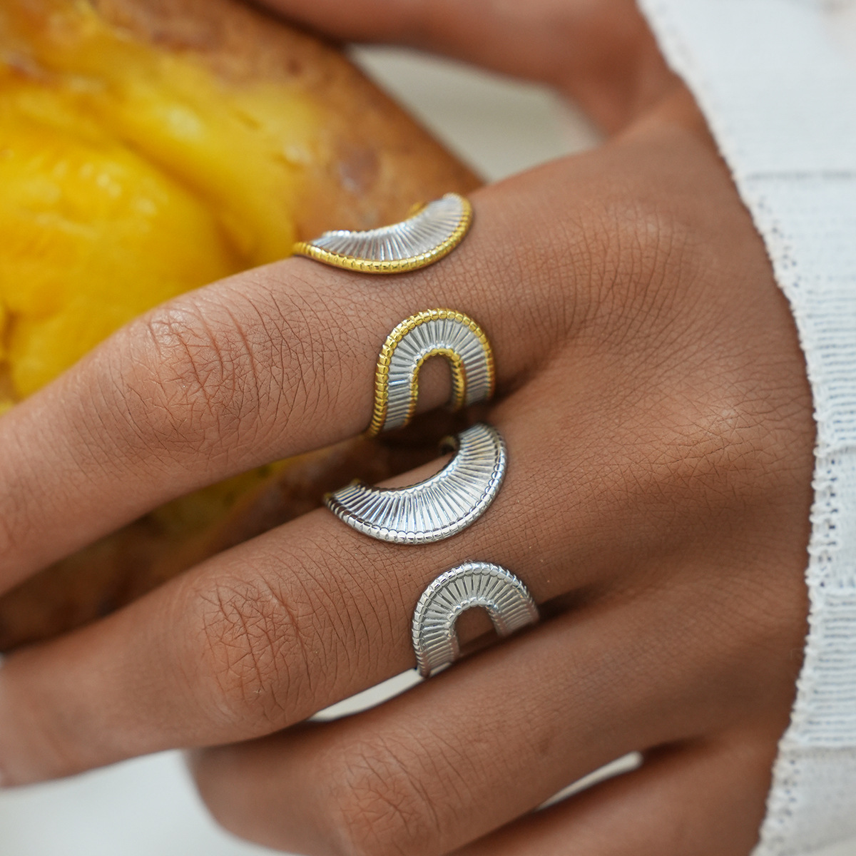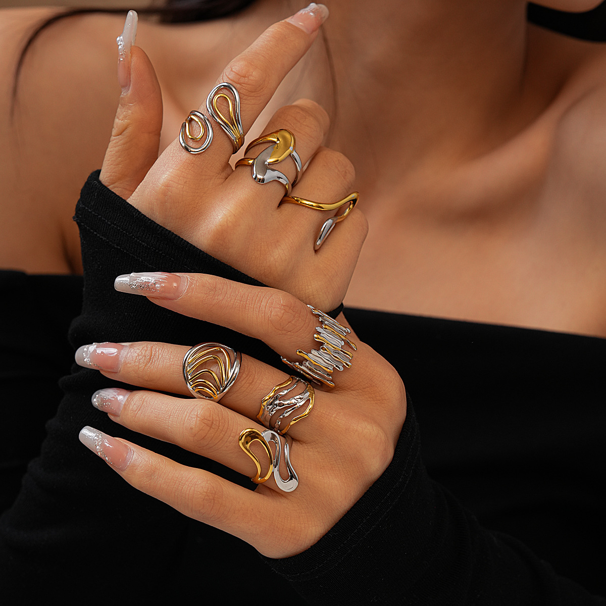 European and American Cross-Border Jewelry Stainless Steel Geometric Hollow Open Ring Simple Fashion Personalized Design Hand Jewelry Wholesale