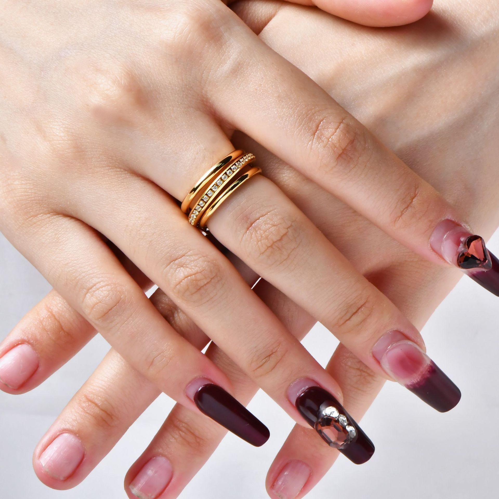 Omaca Five-Ring Color Matching Zircon Ring Stainless Steel Pvd Plated 18K Real Gold Personalized Versatile Index Finger Ring Wholesale Trend
