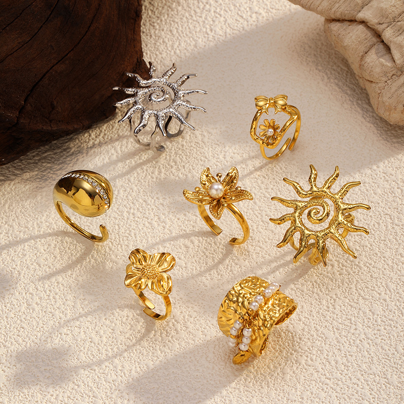 Cross-Border Personalized Sunflower Ring Stainless Steel French Retro High-End Special-Shaped Twisted Sun Ring Batch