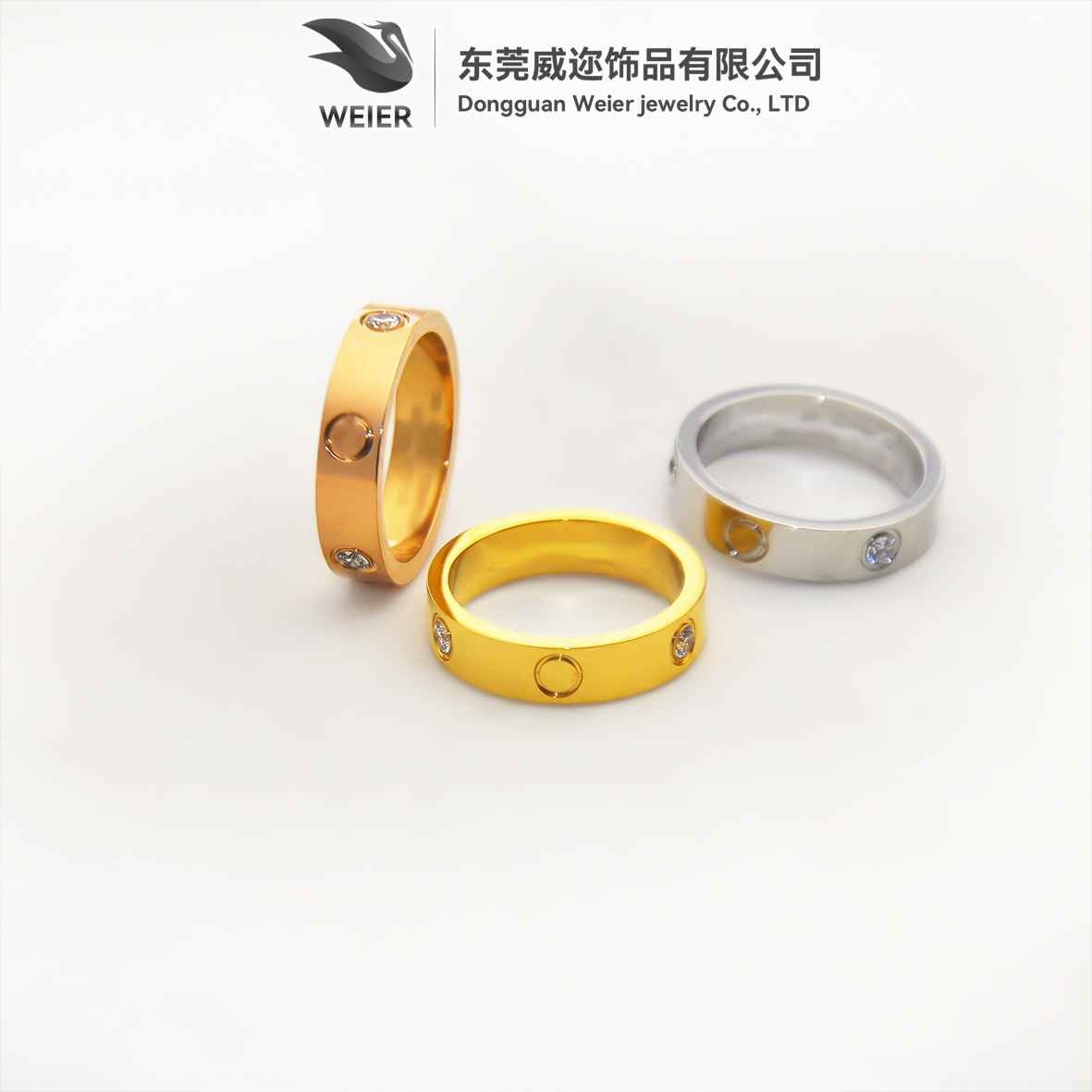 Amazon Supply Casual and Sweet Circle Sparkling Diamond Stainless Steel Rotatable Couple Engagement Ring Engraving Jewelry
