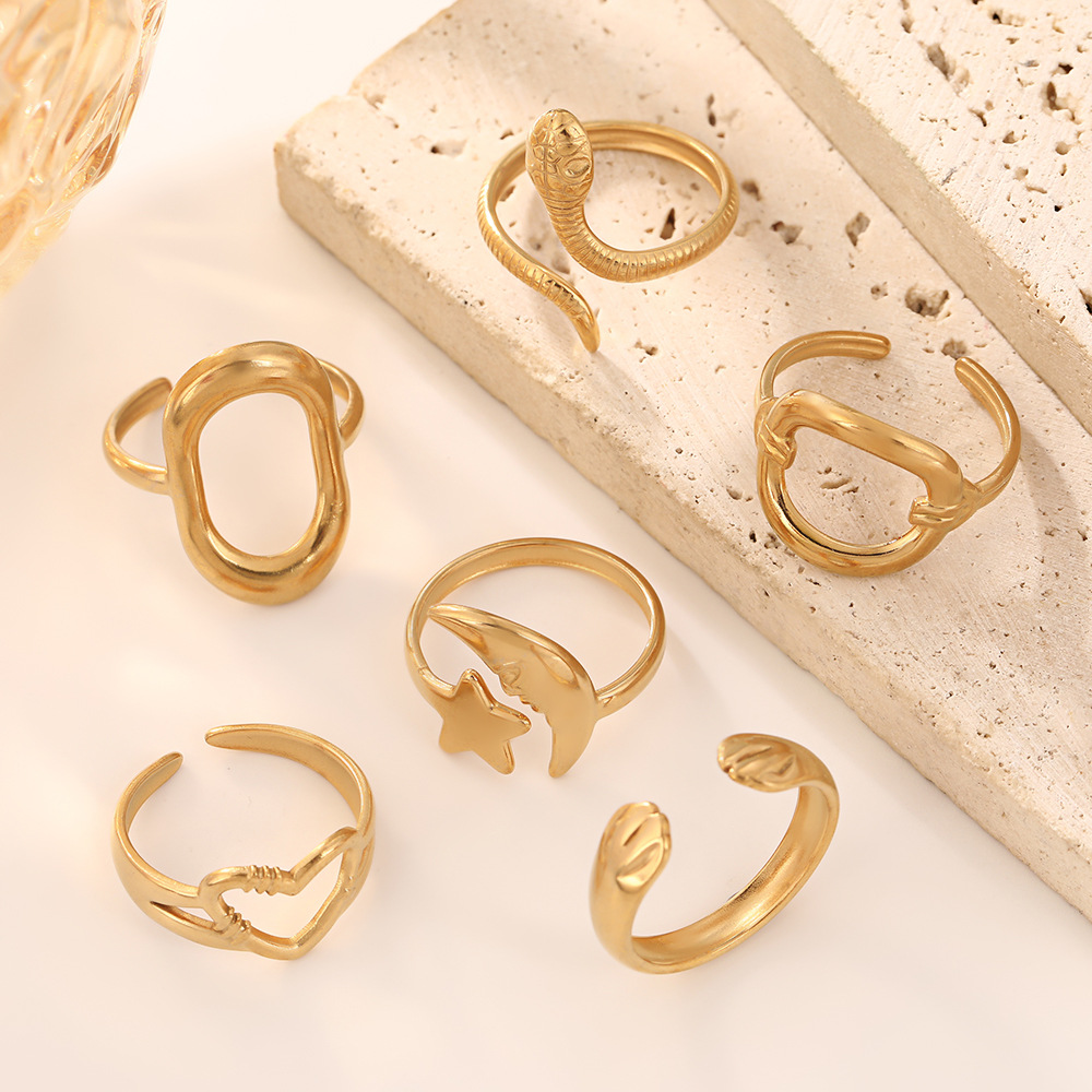 Factory Direct Sales Stainless Steel Star Moon Open Oil Pressure Ring Simple Personality Hip-Hop Geometric Round Hand Jewelry