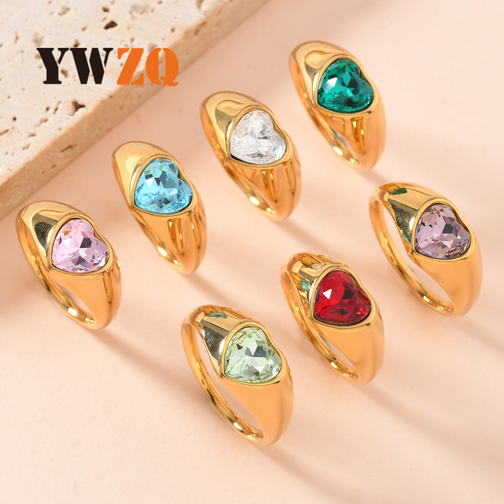 Cross-border fashion stainless steel love ring Joker personality casting heart-shaped zircon ring titanium steel jewelry wholesale