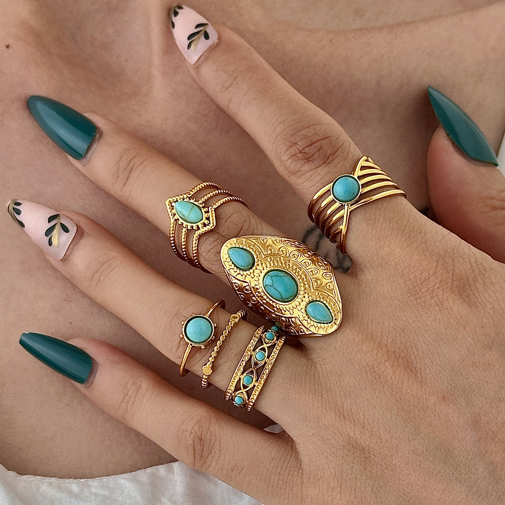 European and American New Single Stainless Steel Ring European and American Vacuum Electroplating 18K Gold Turquoise Cross Open Bracelet