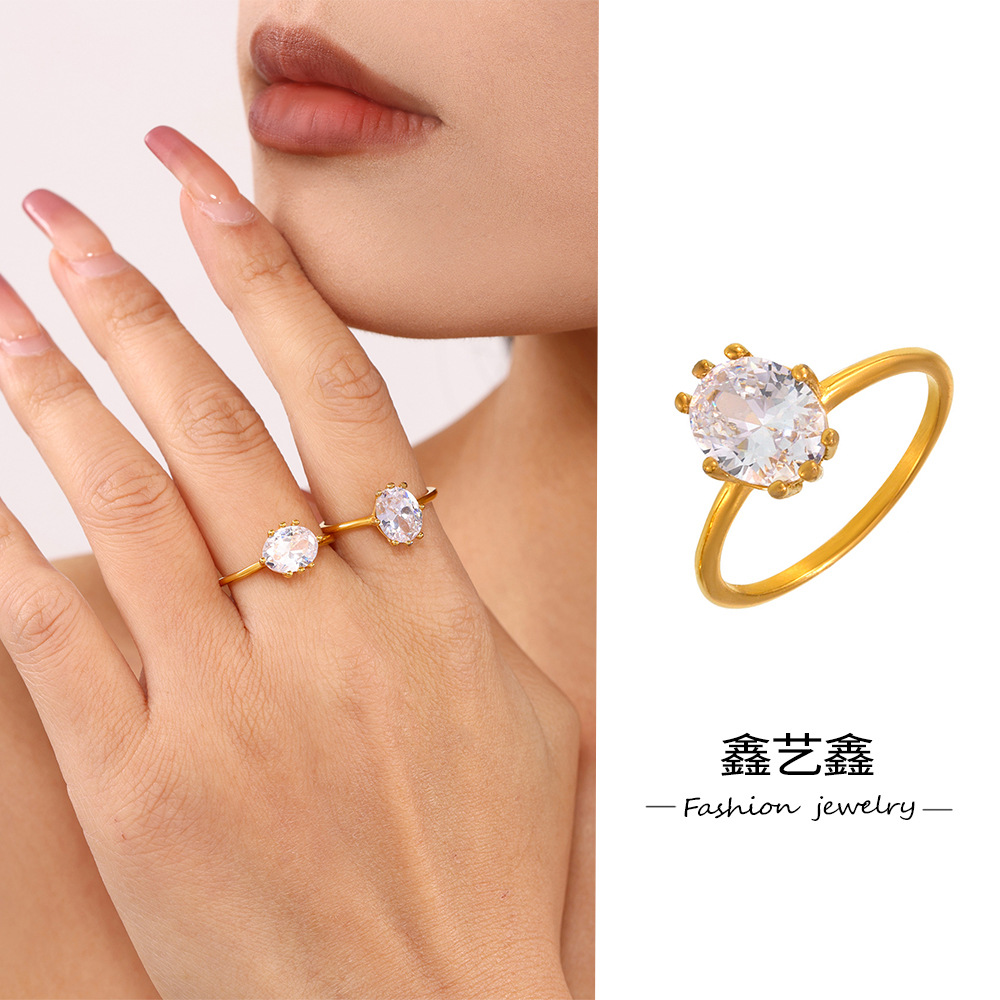 Xinyixin Geometric Oval Zircon Ring Female INS Style European and American Cross-border Wedding Fashion All-match Design Sense Jewelry