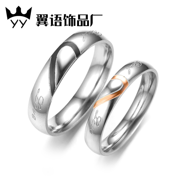 Cross-Border Jewelry Half-Heart-Shaped Stainless Steel Couple Rings, Popular in Japan and Korea, Titanium Steel Matching Rings, Korean Style Couple Models