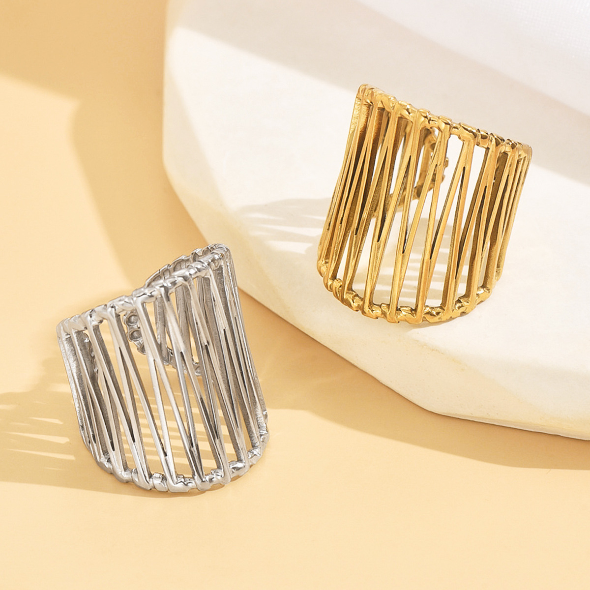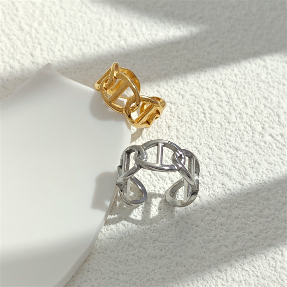 Cross-Border Stainless Steel Ring Simple Ins Style Cut Out Geometric Open Ring Oil Pressure Vacuum Plating 18K Gold Jewelry