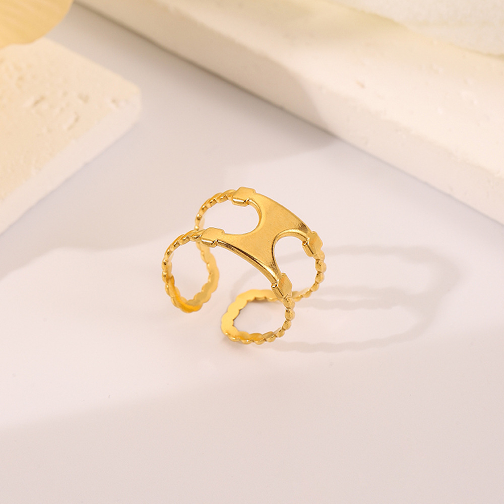 Amazon Fashion new niche stainless steel Gold Open I-shaped hollow curved ring ring factory direct sales