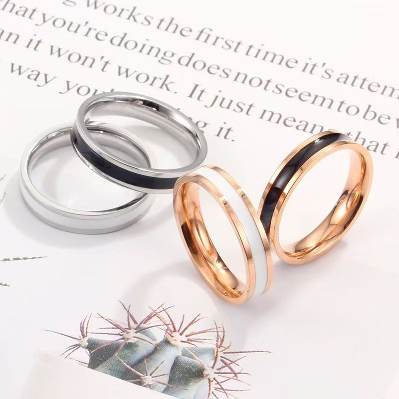 European and American Fashion Oil-Dropping Stainless Steel Jewelry for Women Ins Non-Fading Black and White Glue Accessible Luxury High-End Couple Rings