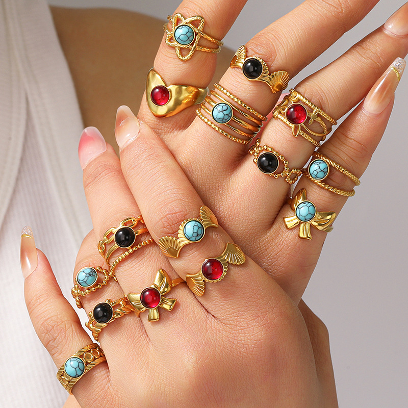 Cross-Border Bohemian Style Multi-Color Turquoise Stainless Steel Open Ring Environmentally Friendly Material Does Not Fade Simple Titanium Steel for Women