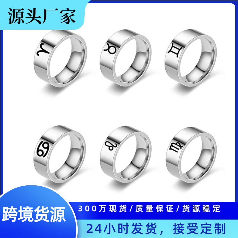 Europe and the United States cross-border supply of twelve constellation ring stainless steel men's and women's Ring Ring 8mm wide 12 constellation ring