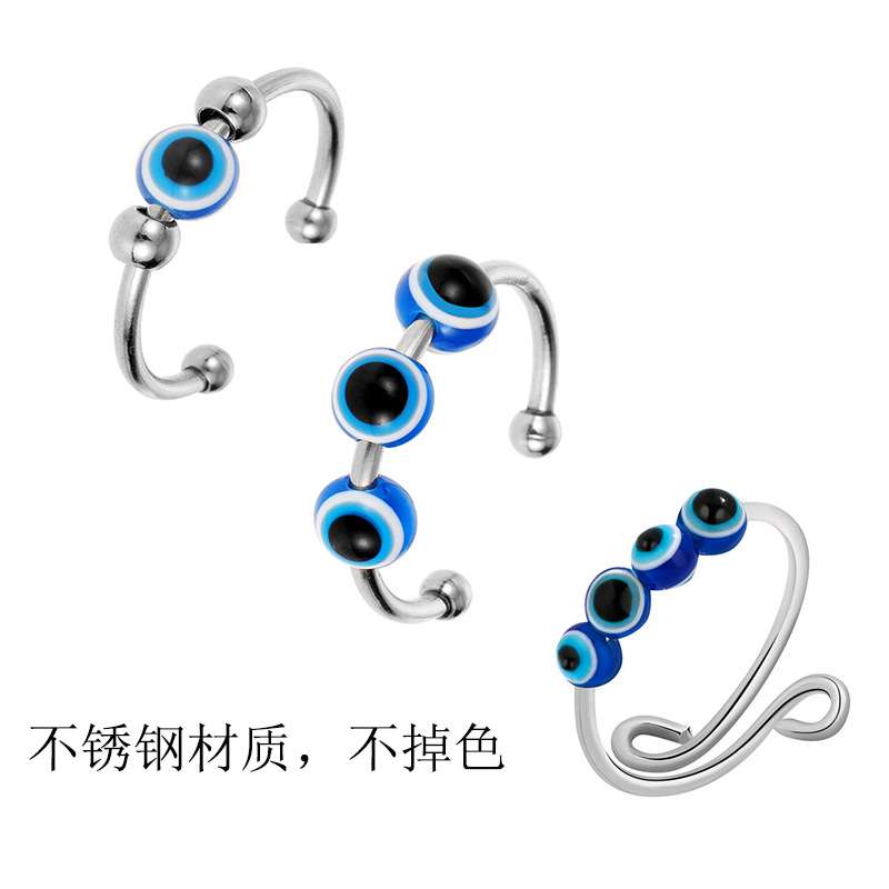 Cross-Border New Product Devil's Eye Micro Beads Rotatable Ring Decompression Anxiety Ring Adjustable Ring