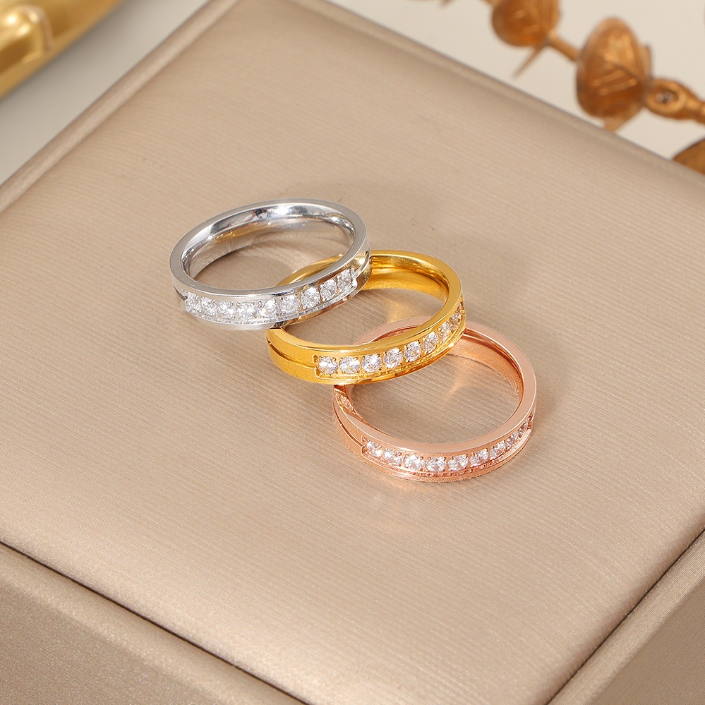 Cross-Border Popular Niche High-End Light Luxury Line Half-Circle Diamond Ring Personalized Fashion Stainless Steel Baby's Breath Ring