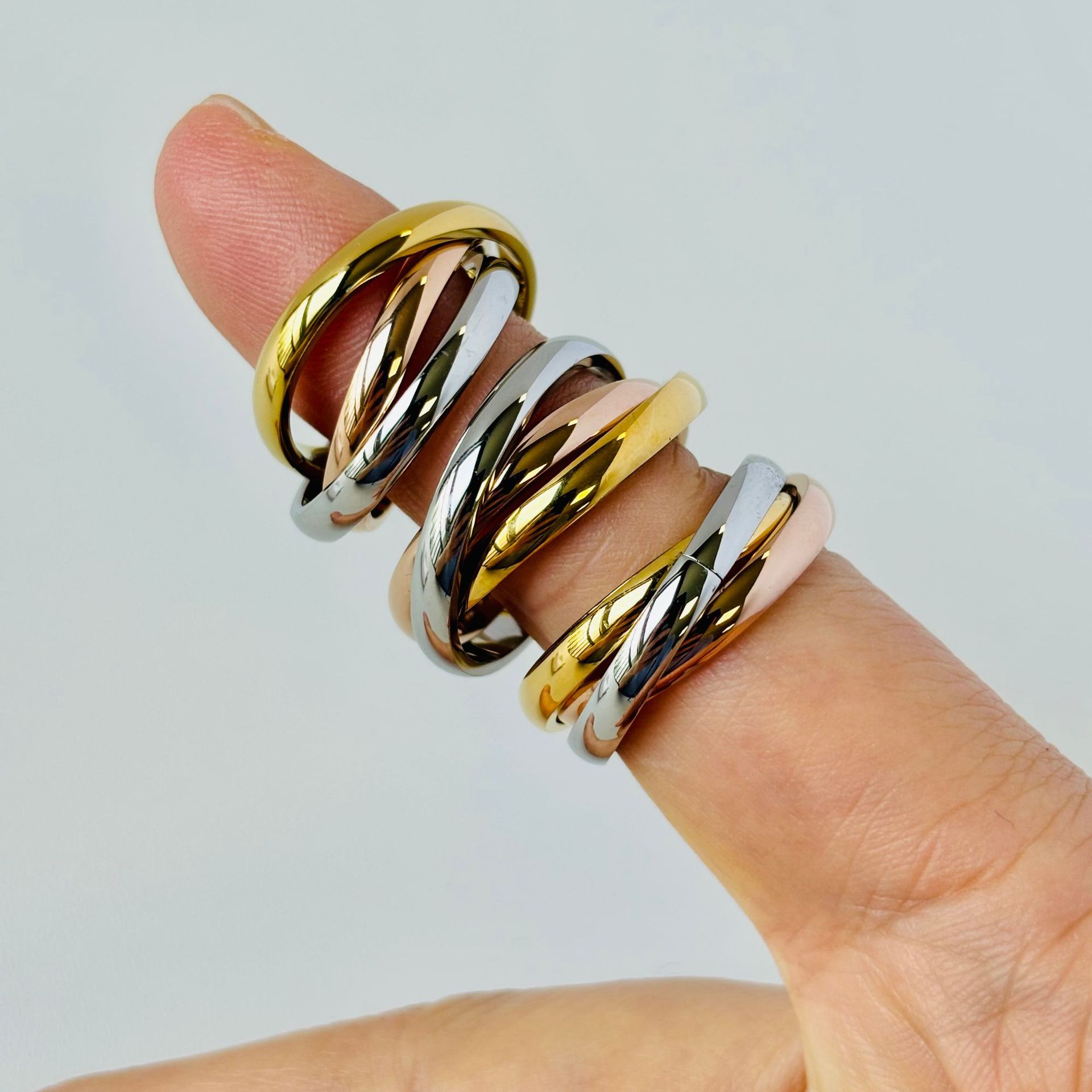 Three-Ring Three-Color Ring Stainless Steel Golden silver Rose Gold Mixed Color Ring Seiko European and American Big Couple Ring