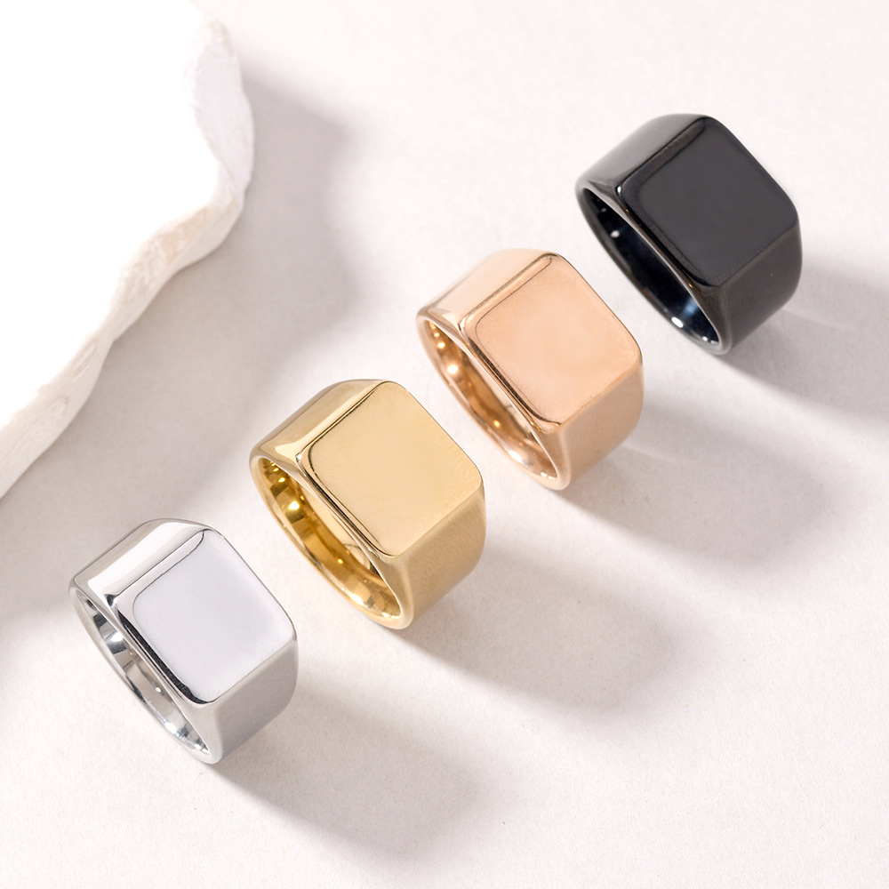 European and American Stainless Steel Ring Wide Version Plated with 18K Gold Glossy Opening Stylish Exaggerated Titanium Steel Ring Metal High-End Sense
