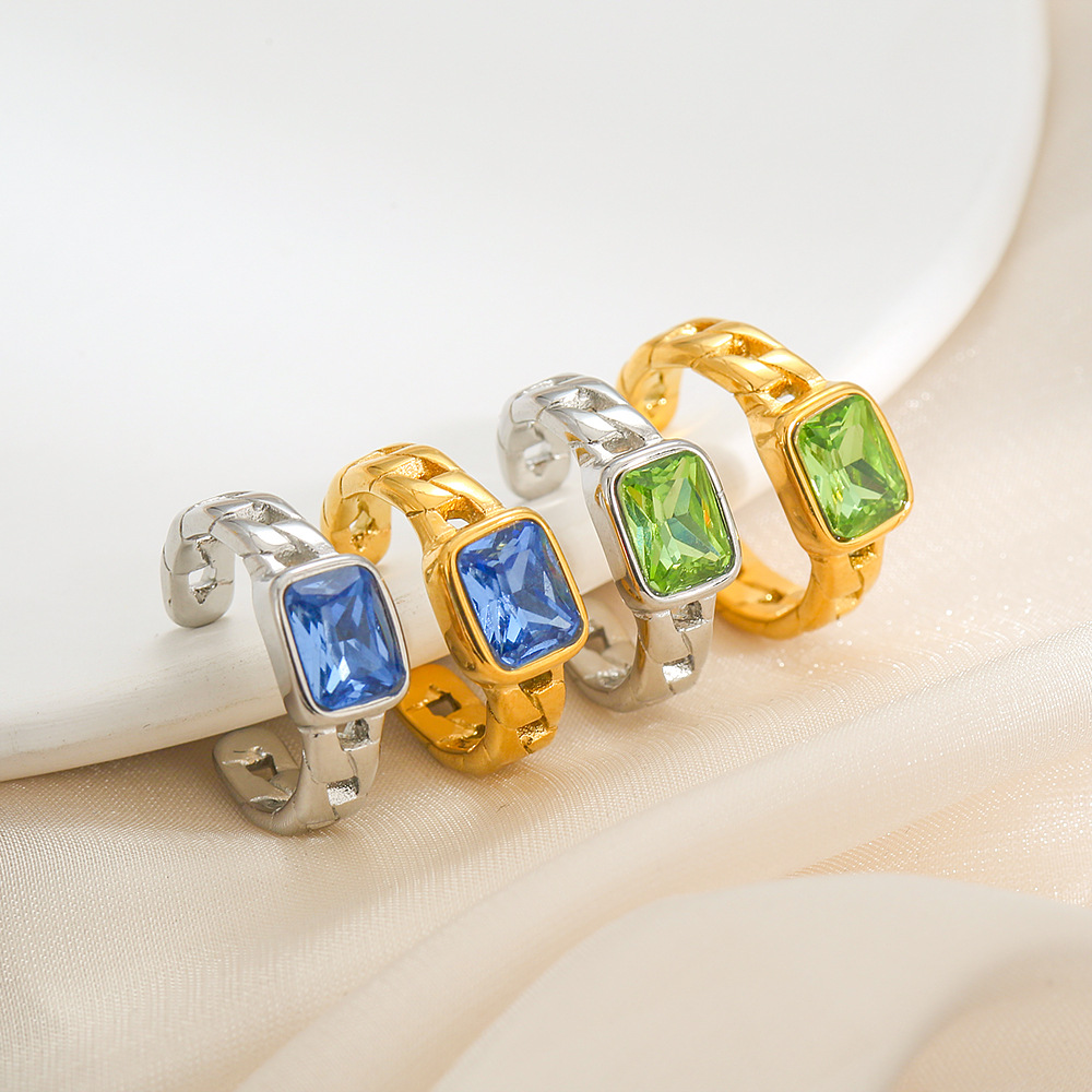 Adjustable Opening Green Blue Sugar New French Style Color-free Titanium Steel Ring Women's Ring Niche Small Jewelry