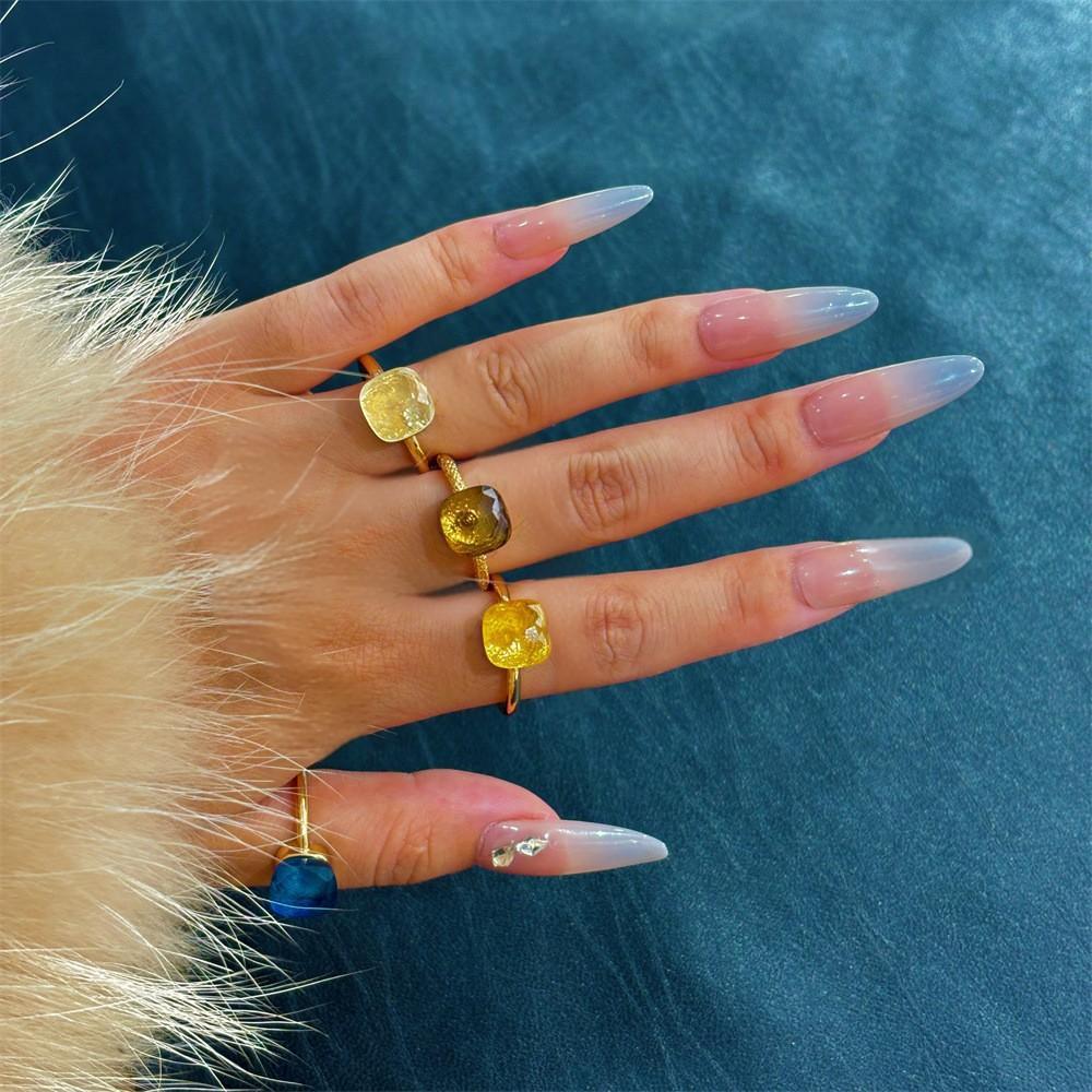 Japanese and Korean sugar December ring female fashion mushroom head luxury irregular birthstone stainless steel jewelry wholesale